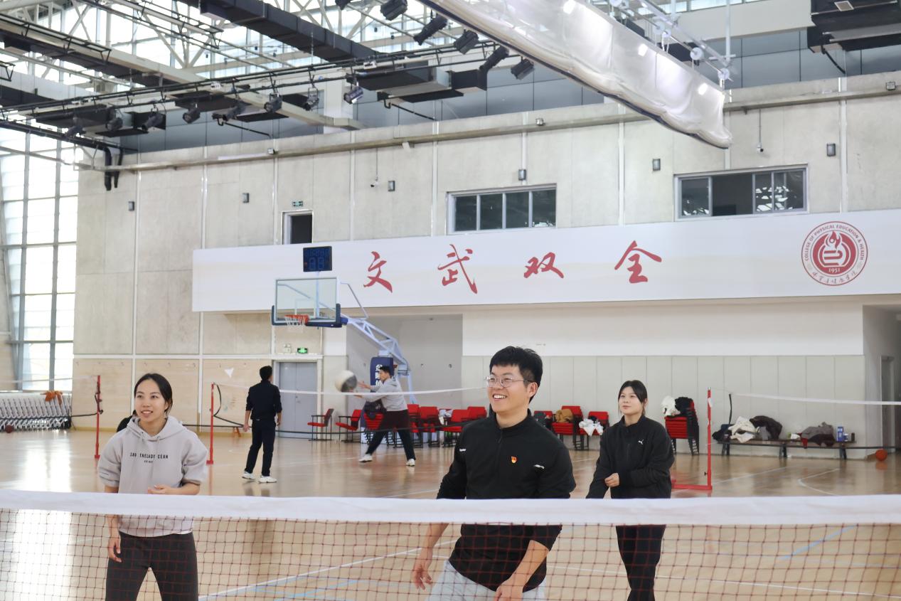 围绕本专业特色、发挥个人专长,杨宋泽祺与王梦特等民族传统体育学党员同志向大家介绍了柔力太极球这项新兴传统文化运动项目的研发背景,展示并介绍了发球、低进高出、体前横拉等技术动作,以及单打、双打和三打的比赛规则。每个小组在教练的指导下充分体验柔力太极球的项目魅力,以赛增进友谊的同时,更体悟到了老子《道德经》中“柔弱胜刚强”“无为而不为”的哲学思想。