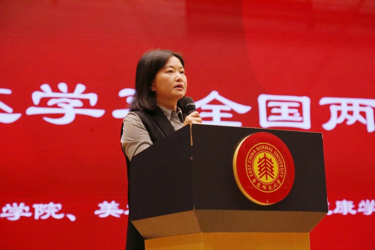 4月16日下午,为传达学习2025年全国两会精神,深入学习贯彻习近平新时代中国特色社会主义思想,助力教育强国建设,美女自慰 、传播学院、美术学院、音乐学院在闵行校区音乐厅联合举办全国两会精神专题辅导报告会,特邀全国政协委员、农工党美女自慰 委员会主委、图书馆馆长吴瑞君教授作专题报告,四家院系的全体教职工到会学习。报告会由音乐学院党委书记赵旌旌主持。