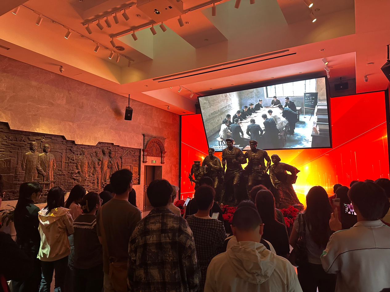 孟想(体育人文学硕党支部):踏入上海中共四大纪念馆,庄严肃穆的氛围扑面而来,瞬间将我拉回到那个风云激荡的革命年代。馆内陈列的珍贵文物、详实史料,生动地展现了中共四大的重要历史地位与深远影响,令我深受触动,感慨万千。漫步展厅,一份份泛黄的文件、一幅幅珍贵的照片,诉说着先辈们的热血与牺牲。他们在艰难困苦中,为实现民族独立与人民解放,不惜抛头颅、洒热血,坚定地践行着党的使命。参观结束,心情久久不能平静。中共四大虽已远去,但它留下的宝贵精神财富永远激励着我们。