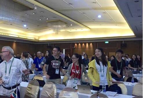 值得一提的是,美国HOPSport公司副总裁(全球事务和研究主管)、亚洲运动科学学报总编辑、亚洲运动科学协会前会长钱铭佳教授对来自中国大陆、新加波的青年学生表示热烈的欢迎,这是APCESS会议上首次出现了如此大规模的学生代表团,这十分有纪念意义。“New Generation,NewPower”,钱教授对新生代力量给予了深厚的期望。之后钱教授用HOPSport的运作案例和Brain Break活动的开展实践说明了要增加体育教师的价值提出,必须要对传统体育的单向输出模式进行改革,让更多的人在全球化的视角下参与体育、享受体育。