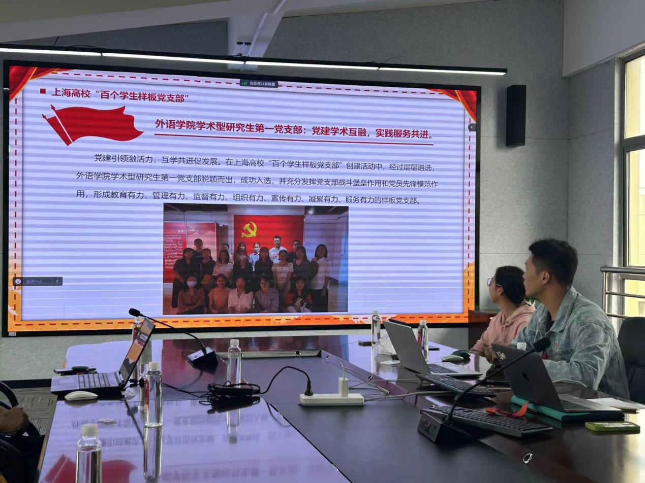 会中,党支部以分组的形式对优秀党员的事迹进行了分享。首先,第一小组对优秀党支部——外语学院学术型研究生第一党支部的事迹进行分享,该党支部以“党建学术互融,实践服务共进”为主题,积极开展党组织建设活动。其次,第二小组对“谨于工作,爱以待人,牢记党员责任”的后勤保障部优秀党员陆平同志的事迹进行分享。最后,第三小组对杨建营教授的事迹进行分析,杨建营教授坚持推动中华优秀传统文化的创造性转化、创新性发展。三个小组积极寻找优秀党员的事迹,认真了解并进行总结,选取的优秀案例分别从榜样支部到后勤工作人员再到身边的老师,强化了党建引领示范,充分发挥了先锋模范作用,带领大家共同学习了来自榜样的力量。