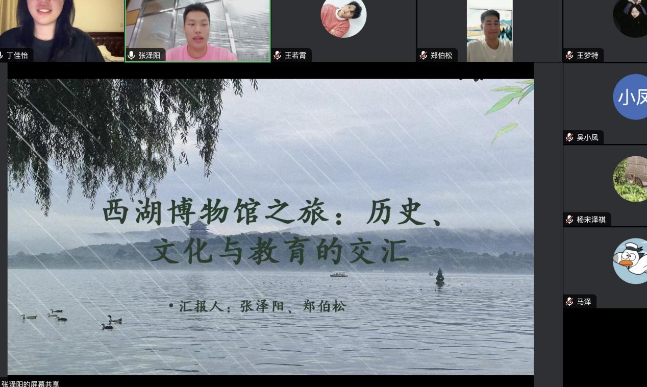 张泽阳同志与郑伯松同志认真总结剖析了参观杭州西湖博物馆的目的与收获,探索杭州与西湖历史,通过走近文化遗产,增强国家民族认同感与文化自信,聆听西湖文化故事,激发党员传承发扬中华文化的热情。在实践中不仅积累了相关历史知识、提升了政治文化素养,更拓宽了整体视野,也使未来的成长方向得以明确。