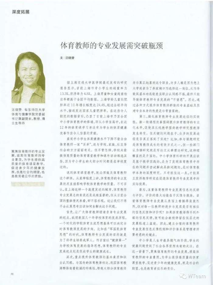 说到体育课堂教学,就必须提及体育教师这个群体。从某种程度上讲,体育教师的专业发展状况直接影响学校体育教学的质量。不可否认,在上海这样一个高度发达的城市,体育教师专业发展总的来说还是成绩显著的,但从目前全国的整体状况来看,却不容乐观。这让我们不得不去认真思考应该如何去解决这个问题。
