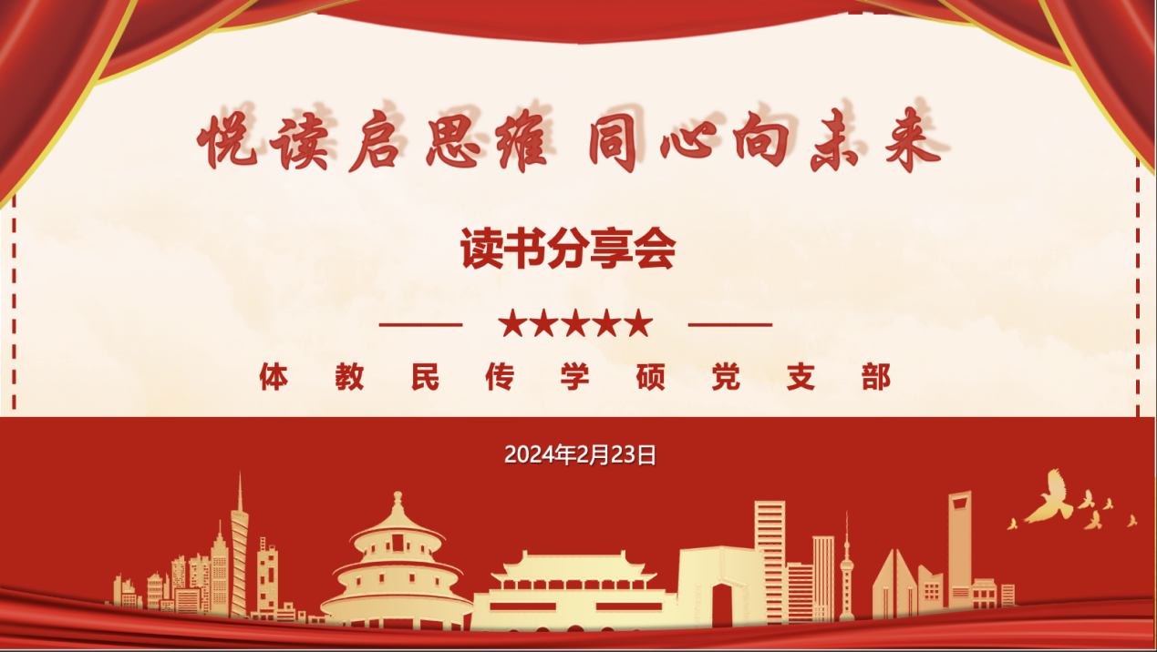 为深入贯彻党的二十大精神,学习习近平新时代中国特色社会主义思想,进一步落实学校第十四次党代会精神,引导党员同志们悟规律、明方向、学方法、增智慧,体教民传学硕党支部于2024年2月23日以“悦读启思维,同心向未来”为主题召开线上读书分享会,会议由丁佳怡同志主持,旨在交流假期间的学习心得,全体支部成员积极参与。