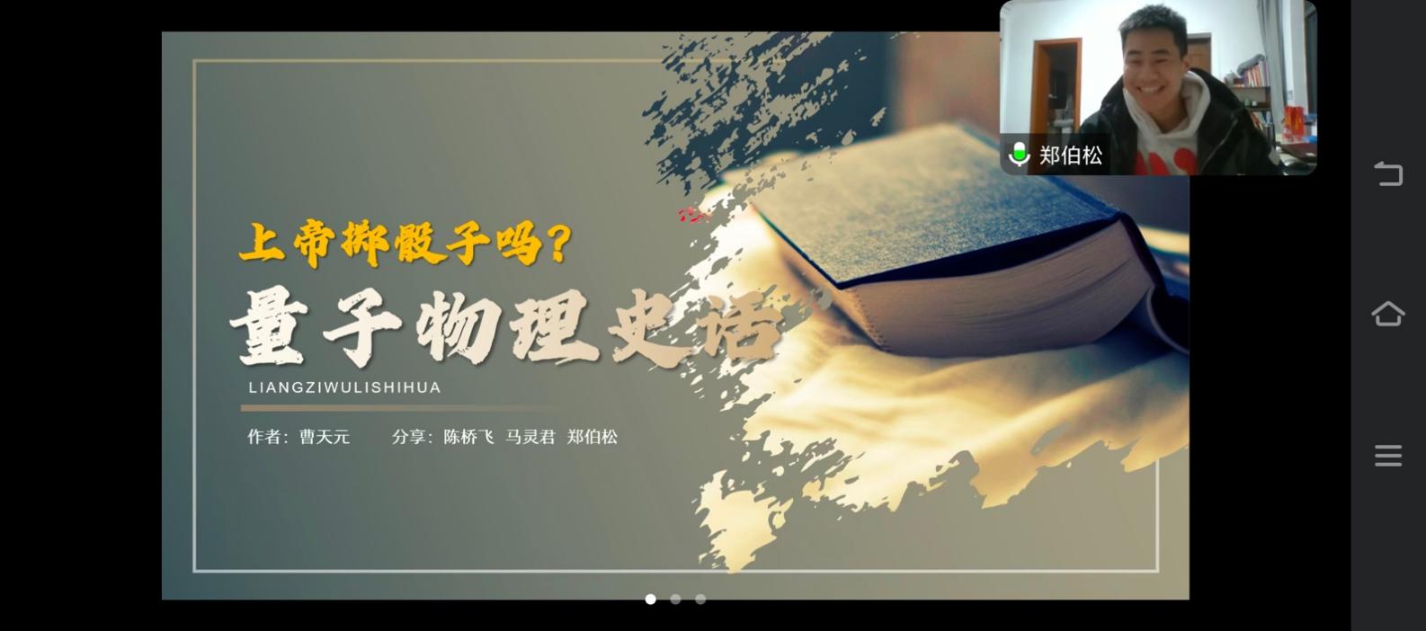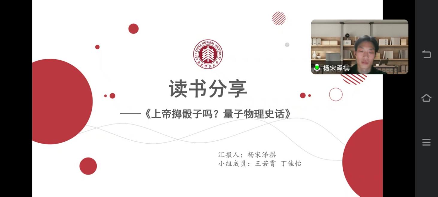 分享环节中,第一小组从通篇阅读后的感受出发,电影般的语言风格为我们展开了一篇量子论的风雨发展录,描绘一批科学巨人颠覆传统物理学大厦的传奇。组员们认为这本书让他们切实体会到了科学家们对于个人事业与认定事实的执着与坚持,由此及彼,对于个人的学业与工作,我们也应该始终保持一颗敬畏求知的心。