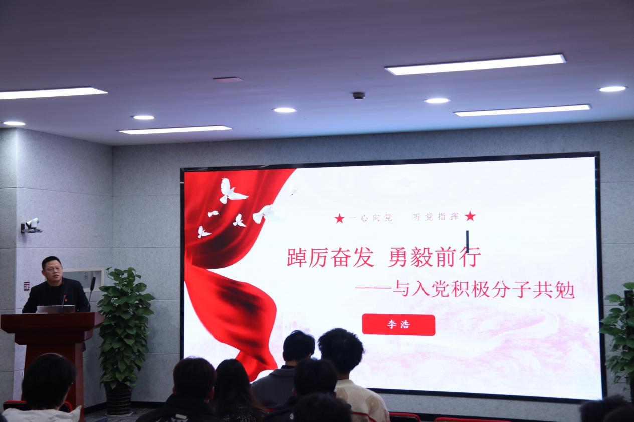 李浩发表了动员讲话,祝贺67位入党积极分子入选培训班。他对教工党支部书记、相关老师和学生骨干精心组织策划本次培训班表示感谢,并期望学员们能通过这次学习机会,真正向党组织靠拢,为入党做好准备。