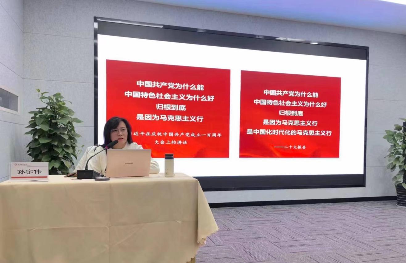 孙宇伟以“马克思主义中国化的第一次历史性飞跃”为切入点展开本次讲座,探讨了毛泽东如何巧妙地将马克思列宁主义的基本原理与我国具体实际相结合并创立“毛泽东思想”的这一伟大历史事件。她提到,“毛泽东思想”作为马克思主义在中国的具体实践,在新民主主义革命中取得了辉煌胜利。随着新中国的成立,毛泽东思想为社会主义改造奠定了基础,成功地解决了“如何在经济文化落后的东方大国进行新民主主义革命”,以及“如何向社会主义过渡”的问题,最后确立了社会主义基本制度,推动了经济、政治、文化的全面发展。这场历史性的飞跃,不仅标志着马克思主义在中国的深入发展,更为中国特色社会主义事业的开创奠定了坚实基础。孙宇伟的精彩解读引发了积极分子们对中国共产党和毛泽东思想的深刻思考,充分认识了马克思主义中国化在我国革命历程中的重要地位和深远影响。