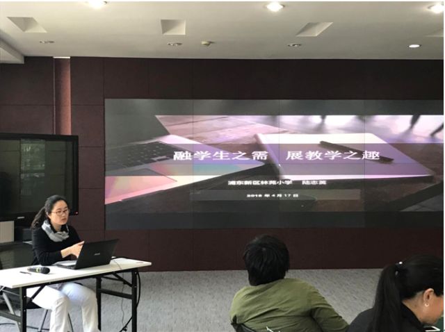 最后,浦东新区林苑小学陆志英老师代表所在小组做了《融学生之需  展教学之趣——读现代课程论有感》的报告。她从案例的角度出发,在全面介绍林苑小学开展小学体育兴趣化课程改革整体情况的基础上,提出今后上海市的课程改革应该结合《现代课程论》的思想进一步在改革过程中彰显“课程意识”。